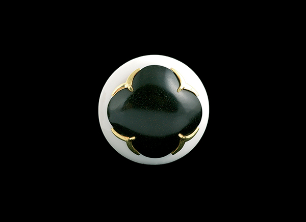 18K yellow gold with white agate and onyx