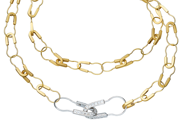 18K yellow gold with small size links and diamond clips