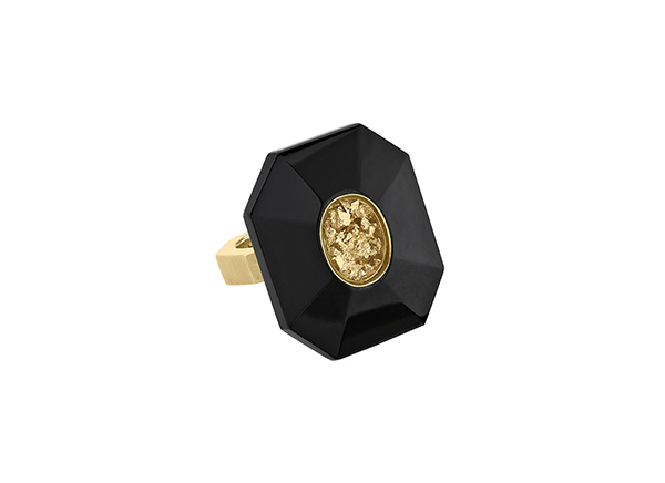 18K yellow gold with onyx, crystal quartz and gold leaves