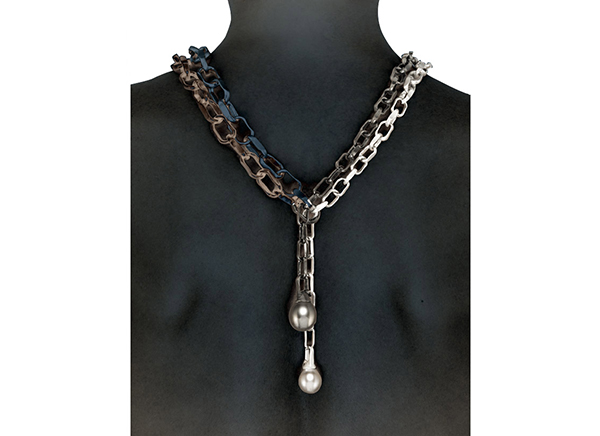 18K white gold, black gold and sterling silver with South Sea pearls