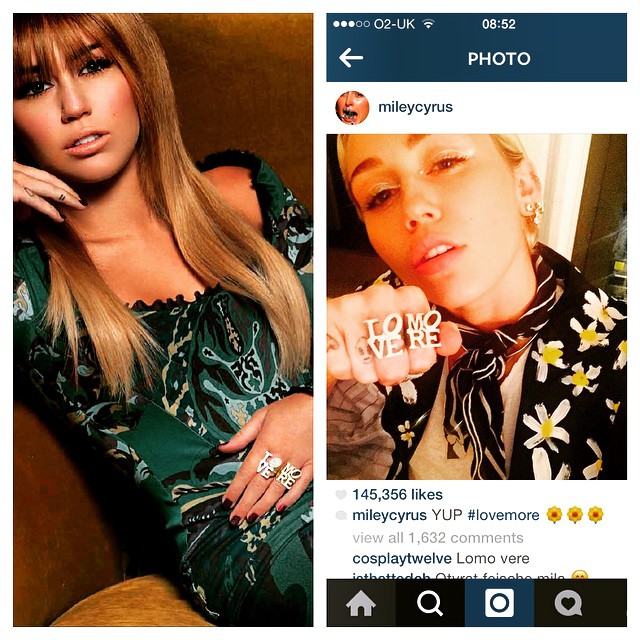 On Miley Cyrus: “LOVE” & “MORE” rings from ROCK collection